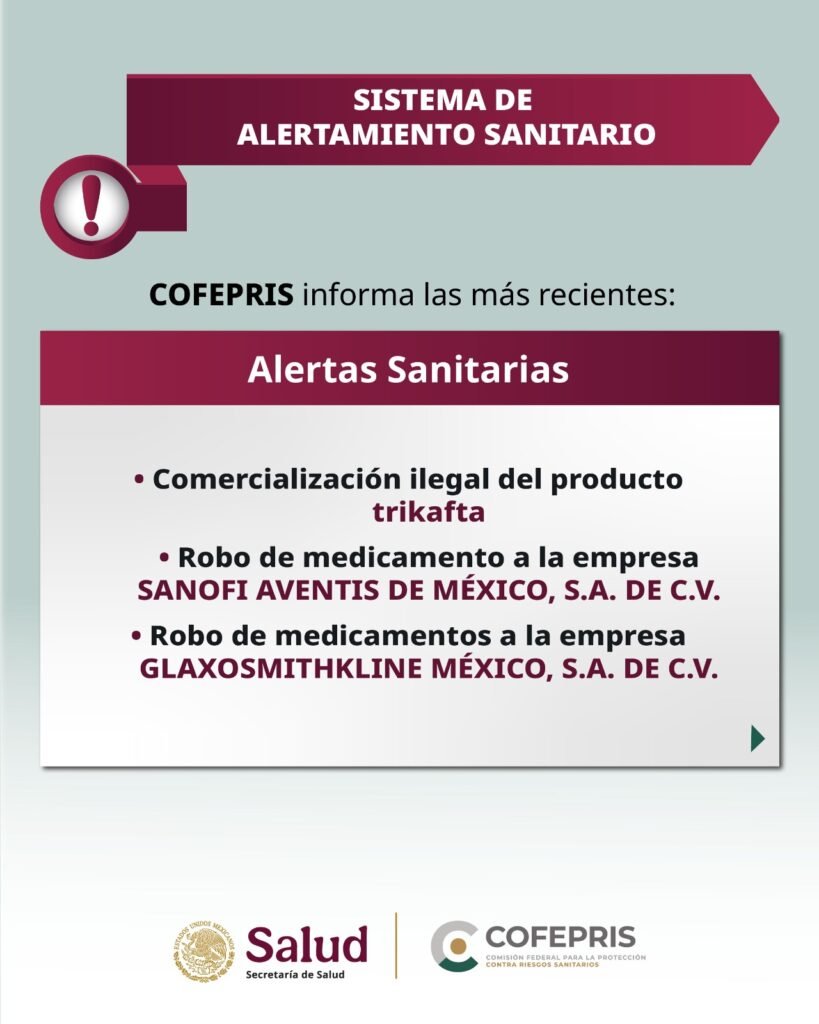 COFEPRIS explicó que la venta de medicamentos robados puede representar un riesgo, ya que se desconocen las condiciones de transporte, manejo y almacenamiento desde el momento en que fueron sustraídos.