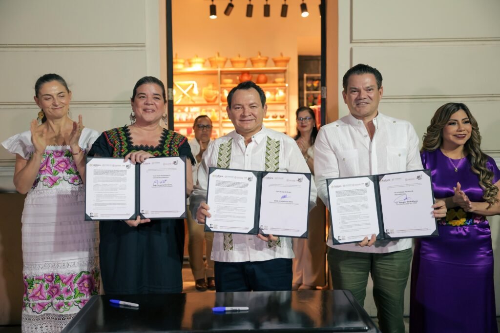 Viteli Macías explicó que el acuerdo, firmado con la representante de Fonart, Sonia Santos Garza, tiene como objetivo fortalecer al sector mediante la profesionalización y la certeza comercial, en un punto de venta ubicado en el centro de Mérida.