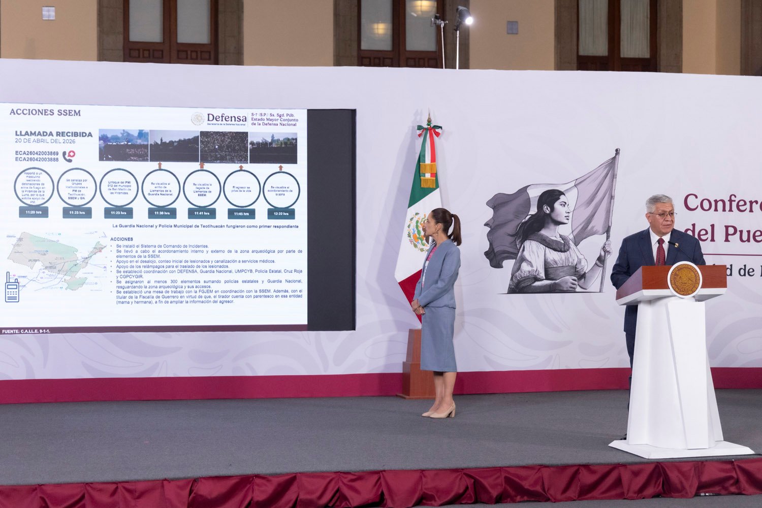 CIUDAD DE MÉXICO, a 21 de abril de 2026.— La zona arqueológica de Teotihuacán reabrirá este miércoles, un día después del ataque armado registrado en la Pirámide de la Luna que dejó una persona fallecida y al menos 13 lesionados, informaron autoridades federales durante la conferencia matutina.