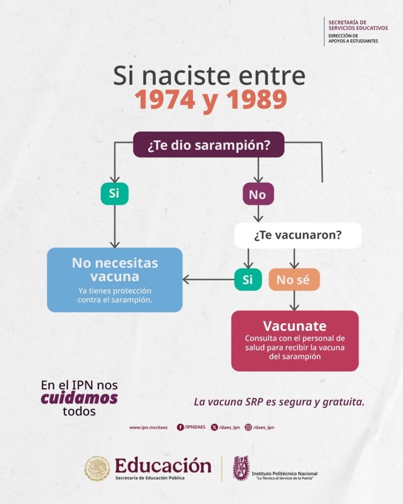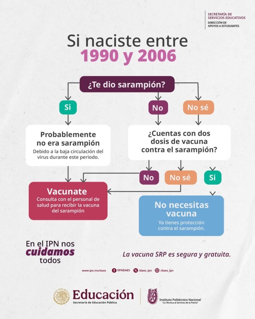 CIUDAD DE MÉXICO, a 18 de febrero de 2026.- ¿No recuerdas si te vacunaste contra el sarampión? El Instituto Politécnico Nacional (IPN) difundió una guía práctica para que estudiantes y comunidad en general puedan identificar si necesitan aplicarse la vacuna, tomando como referencia su año de nacimiento.