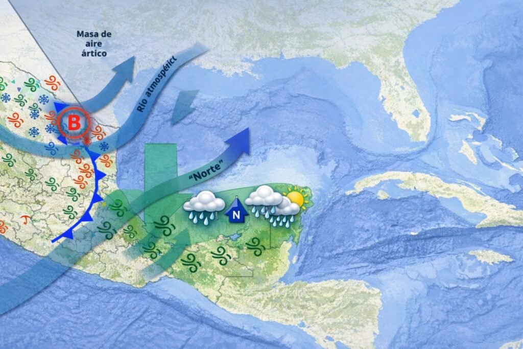El pronóstico oficial indica que el frente frío interactuará con otros sistemas atmosféricos, lo que favorecerá vientos intensos, bancos de niebla y un marcado descenso de temperatura en amplias zonas del país. Para el sureste y la Península de Yucatán, el impacto principal será el aumento de lluvias, acompañado de viento del norte.
