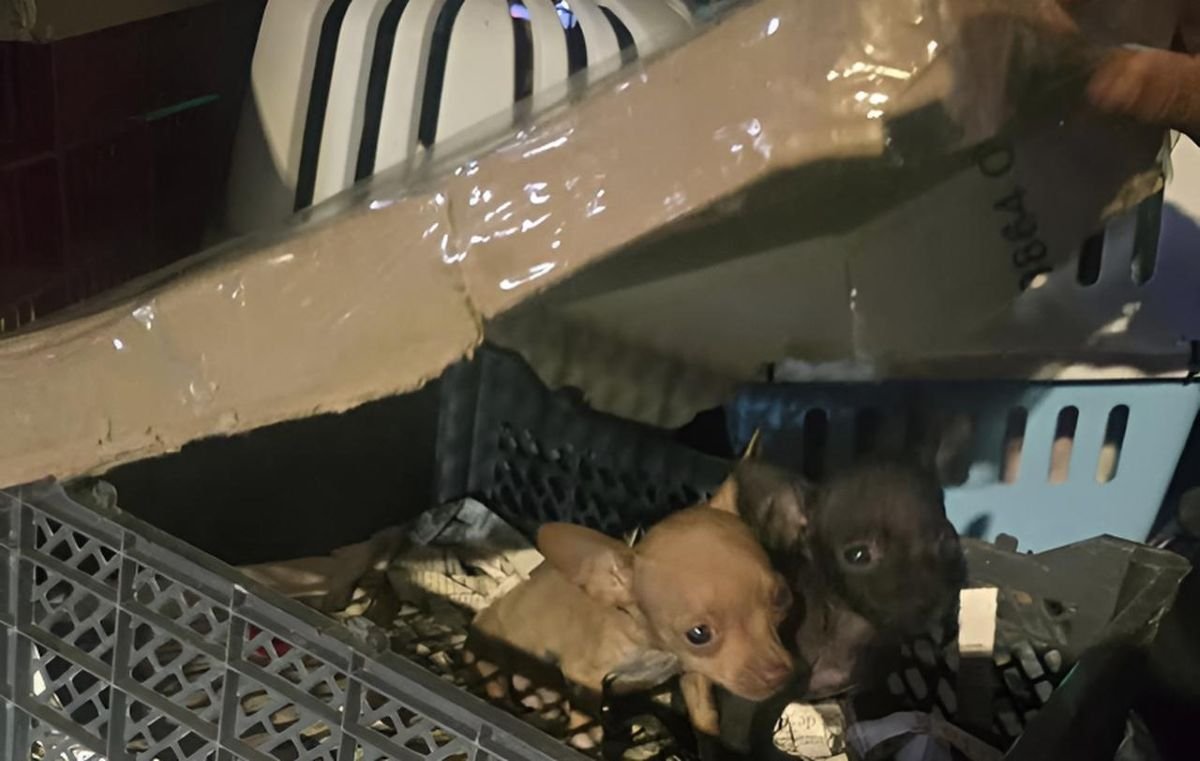 El escenario que encontraron los agentes fue desgarrador, más de 30 cachorros caninos estaban amontonados en recipientes de plástico herméticos, sin ventilación adecuada, carentes de alimento y sin una sola gota de agua.