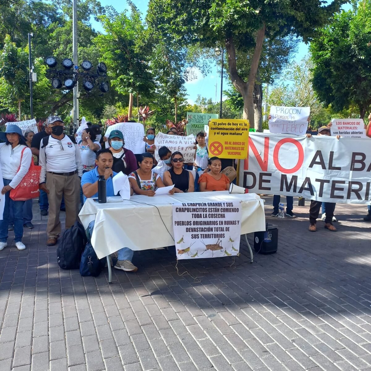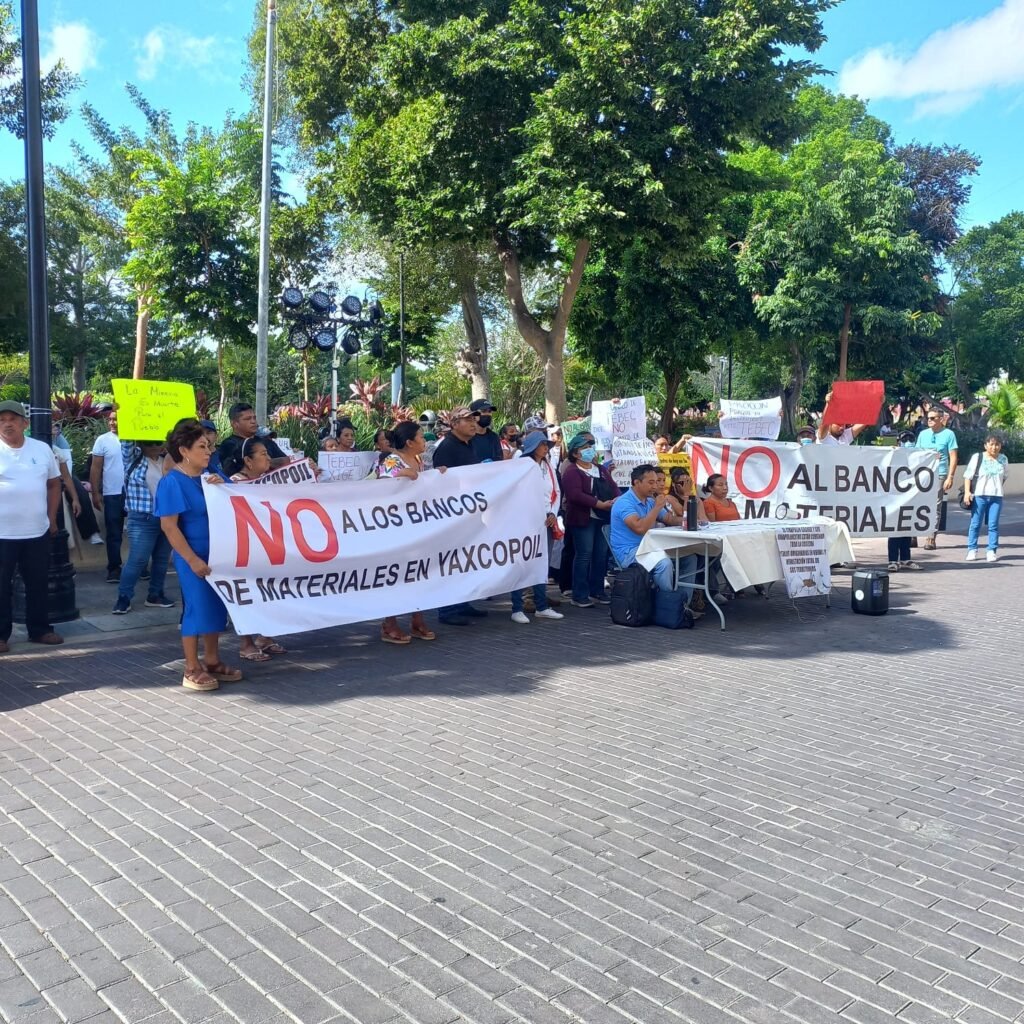 MÉRIDA, Yuc., a 04 de marzo de 2026.– Bajo la consigna “¡Basta de minería en nuestro territorio!”, habitantes de 10 comunidades mayas se manifestaron este martes frente al Palacio de Gobierno para exigir el cese inmediato de la extracción de material pétreo.