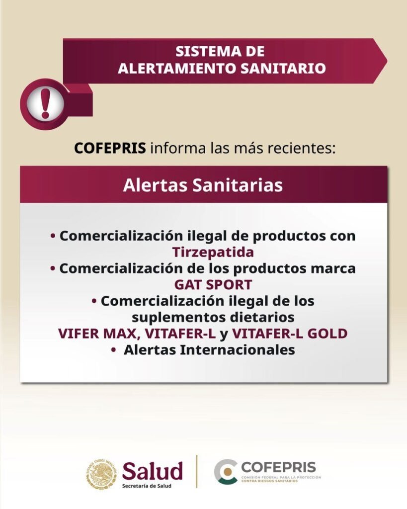 La Comisión Federal para la Protección contra Riesgos Sanitarios (COFEPRIS) dio a conocer que detectó la venta ilegal de productos que dicen contener tirzepatida, un medicamento indicado para el tratamiento de la diabetes tipo 2, el cual requiere receta médica y supervisión especializada, pero que actualmente circula sin control a través de internet.