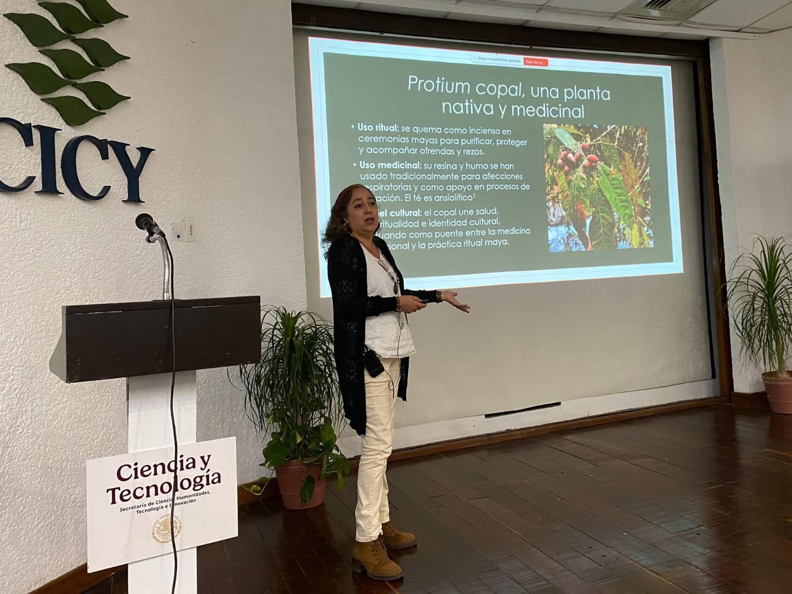 Como ejemplo de esta interdependencia, la investigadora citó el caso del copal (Protium copal), una especie nativa que cumple funciones rituales, medicinales y culturales.