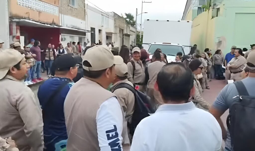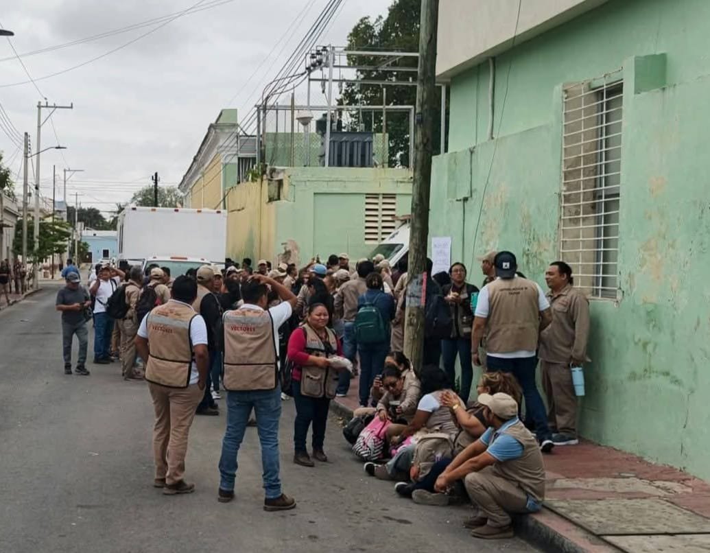 MÉRIDA, Yuc., a 17 de marzo de 2026. – En una acción de presión para exigir el cumplimiento de sus demandas laborales, trabajadores del área de Vectores de la Secretaría de Salud de Yucatán realizaron una protesta durante la madrugada de este martes al encadenar los accesos de la sede central de la dependencia, ubicada en el barrio de Santiago en Mérida.